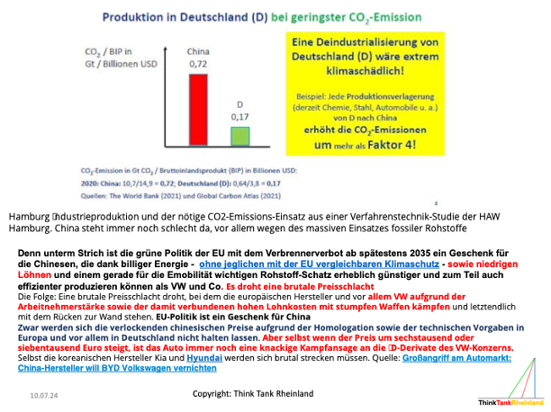 Studien zeigen, dass Deutschland im Vergleich zu China, Indien und den USA einen deutlich geringeren CO₂-Ausstoß hat und zudem weltweit die höchste Recyclingquote in energieintensiven Branchen erreicht. Eine neue Untersuchung bestätigt, dass die EU durch eigene Produktion von E-Auto-Batterien den CO₂-Ausstoß um bis zu 60 % senken könnte.