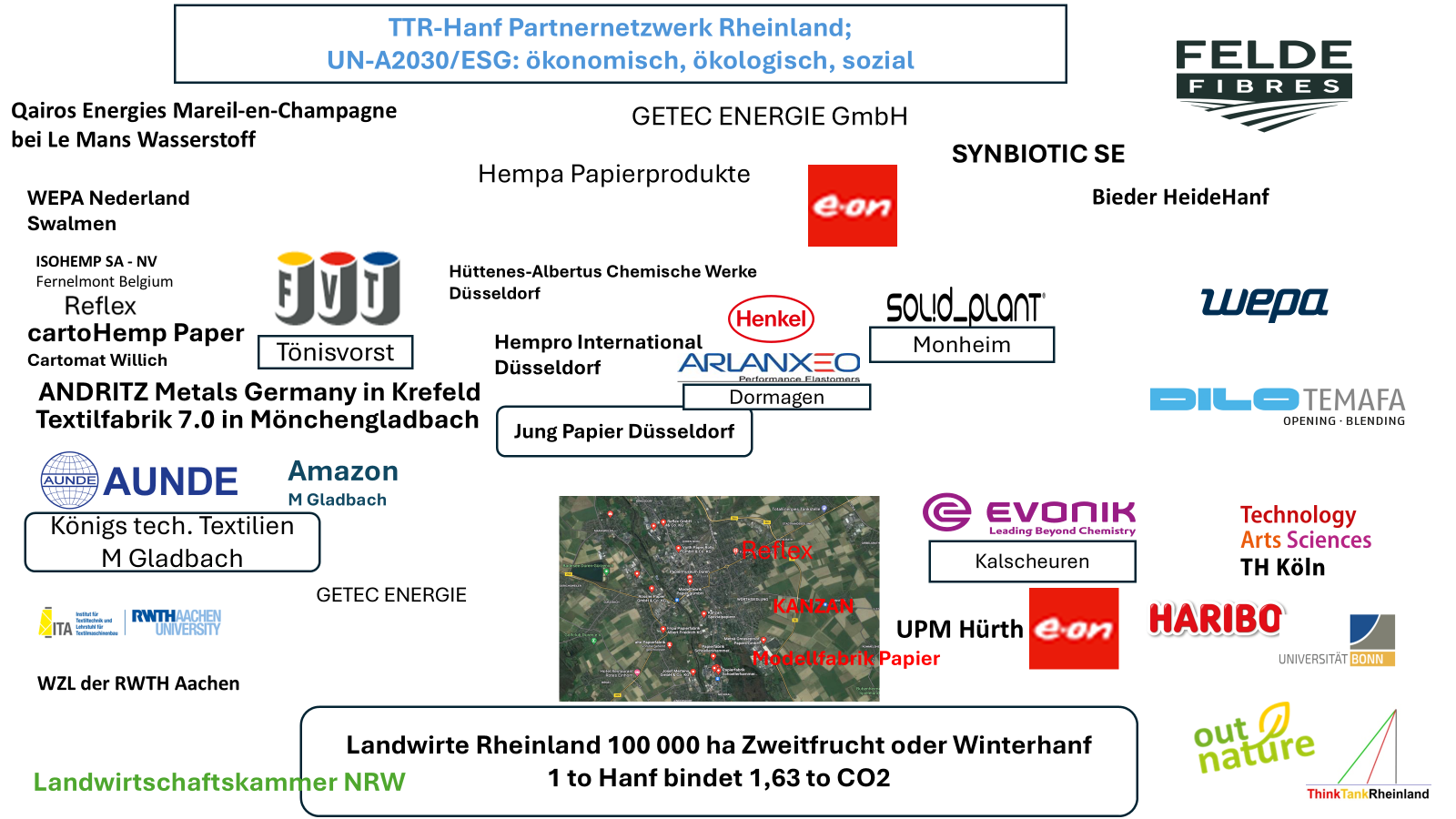 Der TTR initiiert Projekte, die sich auf den Anbau, die Verarbeitung und Verwertung von Hanf als nachhaltigen Rohstoff spezialisiert haben. Hanf als Rohstoff und Energiequelle für die Papier-, Textil-, Chemie-, Bau- und Kunststoffindustrie kann helfen, CO2 in großem Maße zu reduzieren.